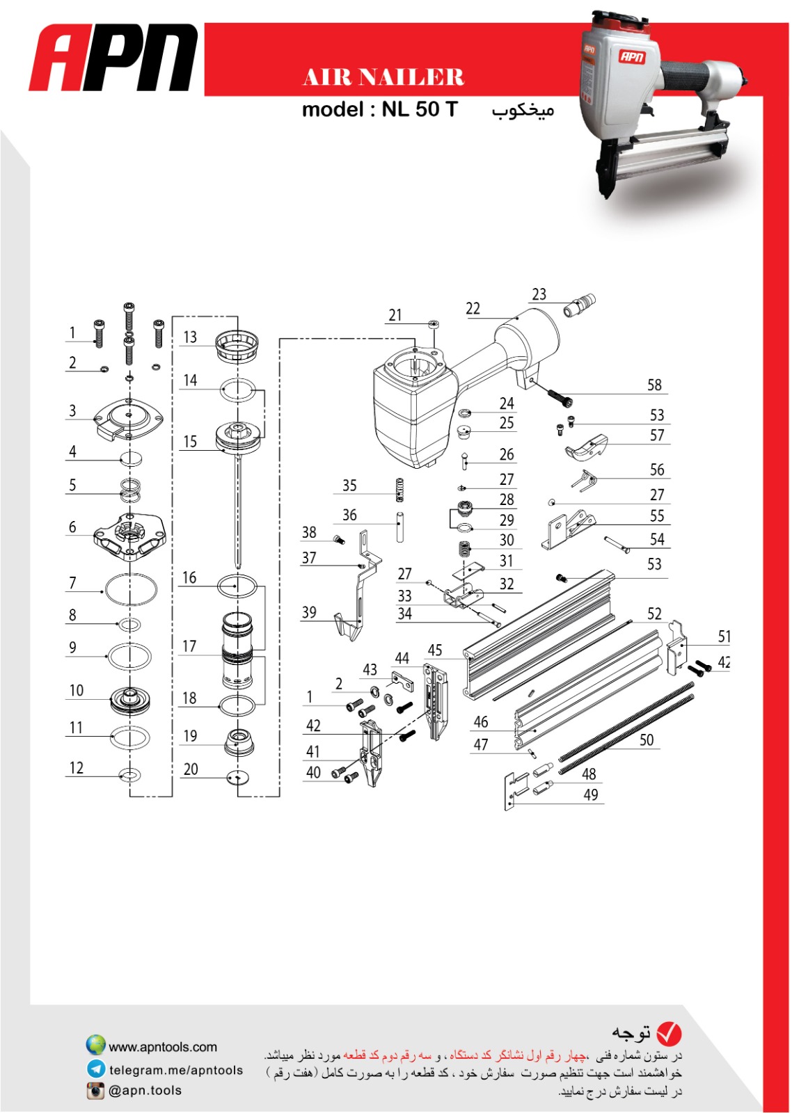 میخکوب 50 میلی متر تیپو apn مدل NL50T با طراحی صنعتی فوقالعاده